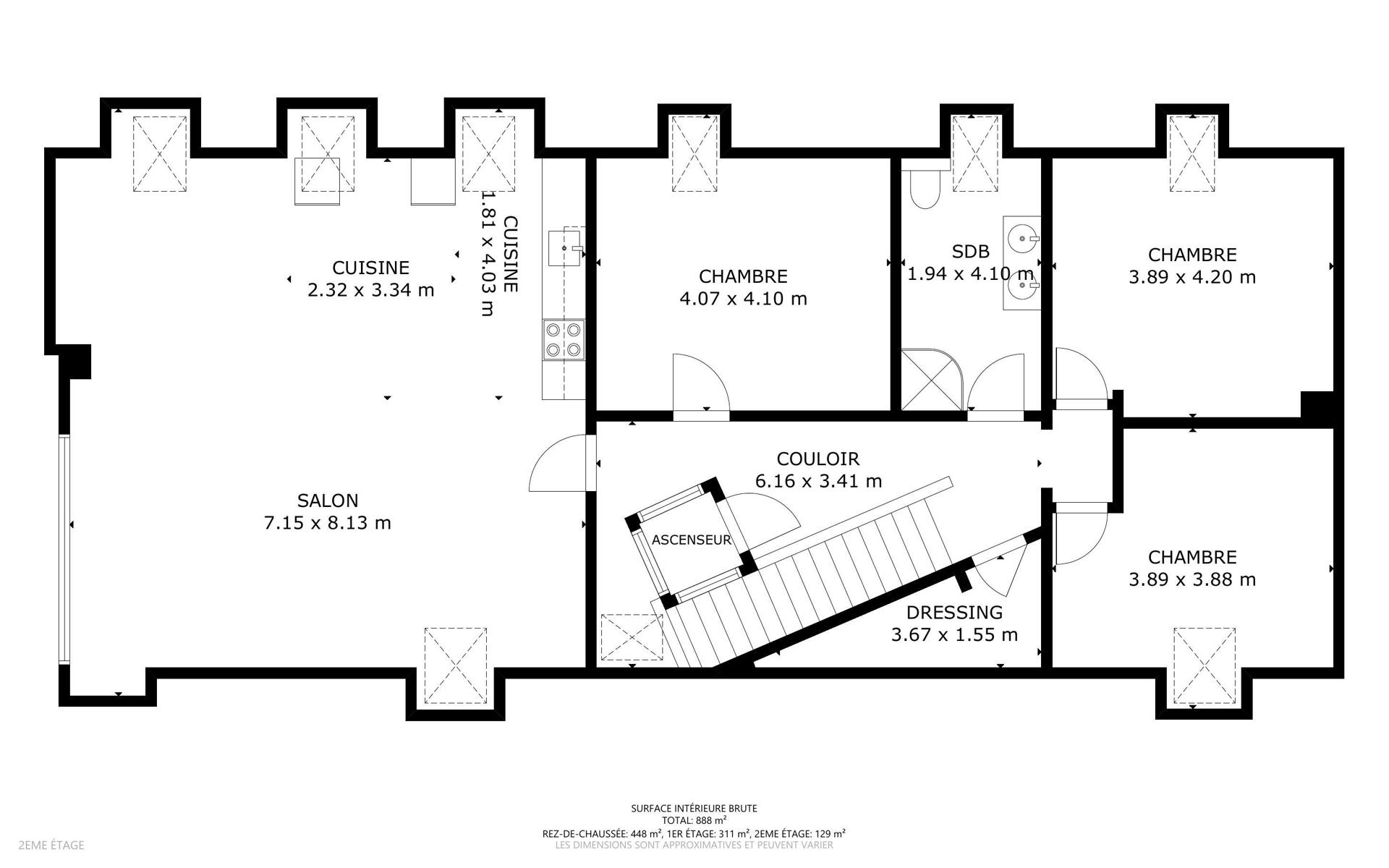 Cette demeure d’exception développe une surface brute d’environ 888 m² (hors caves) et de 513 m² de plancher chauffé selon PEB.